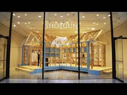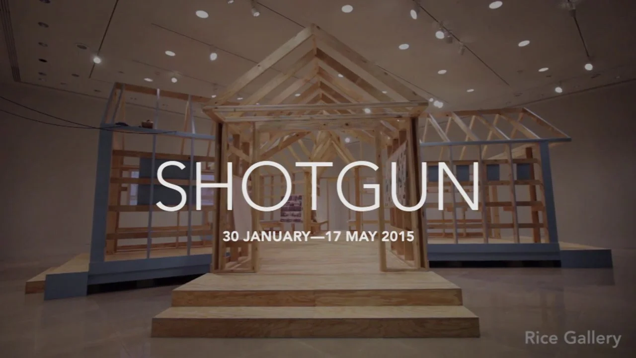 At the center of Rice Gallery sits SHOTGUN, a house-like structure inspired by Houston’s historic row houses. The title for the installation comes from the row house’s common nickname “shotgun,” a term coined to describe its corridor- like layout that allows a clear path or “shot” from front to back door. This deceptively simple form of architecture, comprised of understated geometry (an elongated box with a pitched roof) and basic construction, was often passed down without formal plans or drawings and made from scrap wood or inexpensive lumber. Principals Yoshiharu Tsukamoto and Momoyo Kaijima of Tokyo-based architecture studio Atelier Bow-Wow collaborated with Jesús Vassallo, Spanish architect and professor at Rice University, and with the students of the Rice School of Architecture to dig far beneath the surface of this assumed simplicity and to celebrate the row house’s ingenuity. Over the fall semester of 2014, Atelier Bow-Wow and Jesús Vassallo taught the course “Learning from Houston” to intensively study the row house’s history and contemporary condition and to simultaneously use this research to design and build a new site-specific installation for Rice Gallery. In its interdisciplinary focus, the project is a continuation of Rice Gallery’s approach to installation art which embraces experimentation across disciplines from interior design (White Webb) to product design (Karim Rashid) to architecture (Shigeru Ban, Ball-Nogues Studio).