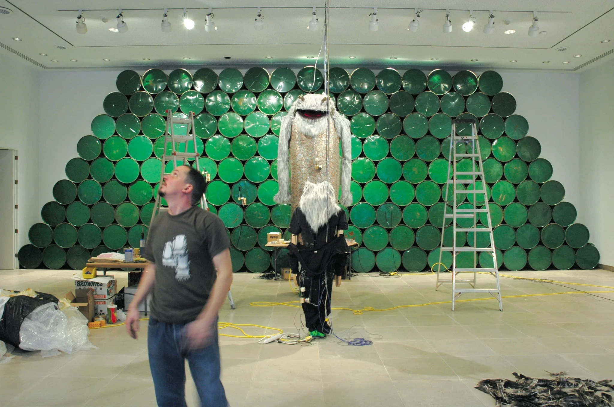 Conversation, David Ellis’s installation at Rice Gallery, is a booming, rocking mix of improvisational painting, sculpture and rhythm. Early in his career, beat and rhythm were unspoken components of Ellis’s work. As a painter his goal was to make the rhythm that he heard in his head visible to the viewer. His next step was to incorporate beat directly into his work. He explored this idea in a series of “drum paintings,” rhythmic installations that combine painting, sculpture, and beat. Conversation, his most ambitious drum painting to date, continues the evolution of his work, making beat not only audible, but also visible.