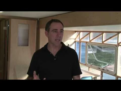 “I believe we ought to consider deploying artists as part of the mix of disaster workers, medical personnel, NGO’s, architects, and urban planners - those people charged with responding to, repairing, and re-envisioning disaster sites like New Orleans,” says Villinski. To this end, from April to October of 2008, Villinski worked nonstop, gutting, rebuilding, and playfully rethinking a 30-foot Gulfstream “Cavalier” trailer virtually identical to the 50,000 trailers built by Gulfstream for FEMA. Re-born as theEmergency Response Studio, the trailer’s formaldehyde-riddenoriginal materials are replaced by entirely “green” technology and building materials, including recycled denim insulation, bamboo cabinetry, compact fluorescent lighting, reclaimed wood, and natural linoleum floor tiles made from linseed oil. It is powered by eight mammoth batteries that store energy generated by an array of solar panels and a “micro” wind turbine atop a 40-foot high mast. Not only practical, Emergency Response Studio is a visually engaging structure with an expansive work area featuring a wall section that lowers to become a deck. A ten-foot, elliptical geodesic skylight allows extra headroom and natural lighting in the work area. Though designed as an artist’s studio and residence, Emergency Response Studio is an ingenious prototype for self-sufficient, solar-powered mobile housing.